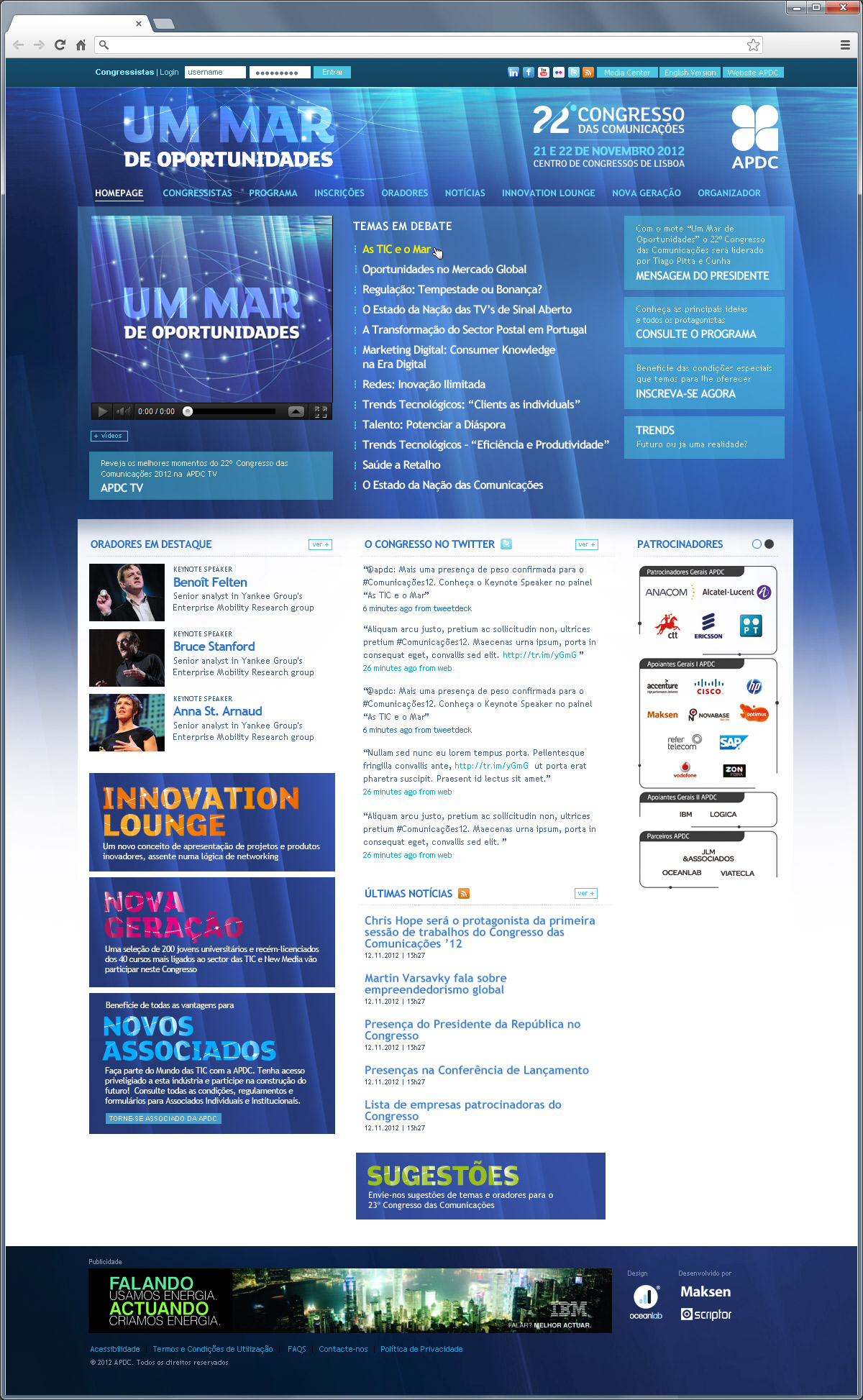 Após o desenvolvimento do site do 18º Congresso das Comunicações, organizado pela APDC, o novo desafio que coube à Oceanlab foi o desenvolvimento do site da própria APDC, com o objectivo claro de apresentar uma mudança em relação ao anterior site, tornando-o mais dinâmico, mais próximo do utilizador e com mais informação relevante para a área das comunicações.